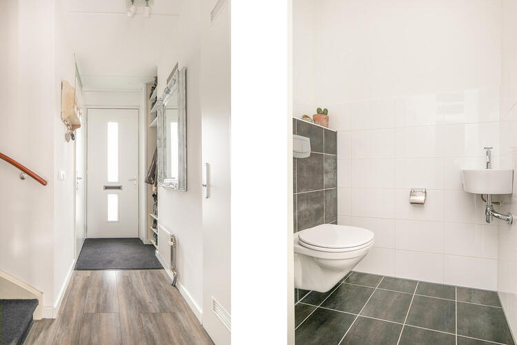 Via de gemeenschappelijke entree met brievenbussen en bellentableau is per trap de eerste verdieping te bereiken, alwaar de meterkast op de gemeenschappelijke gang is gesitueerd.