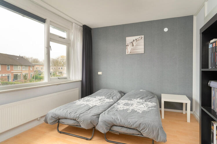 Voorts is vanuit de hal de douchekamer met wastafel te bereiken en aan de achterzijde één slaapkamer en de eenvoudige keuken met toegang tot het balkon. De 2e lichte slaapkamer ligt aan de voorzijde.